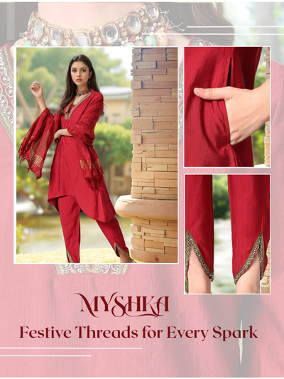 Myshka Women's Red Kurta Set