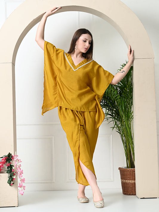 Myshka Women's Solid A-Line Collared Neck Casual Tunic In Mustard Colour