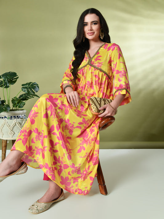 Myshka Women's Yellow Anarkali Kurta Myshka