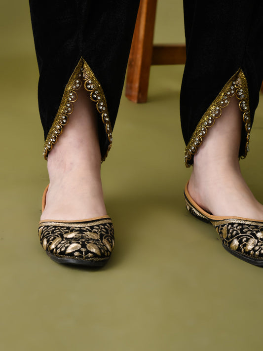 Myshka Women's Black Velvet Kurta & Trousers With Dupatta Party Sets Myshka