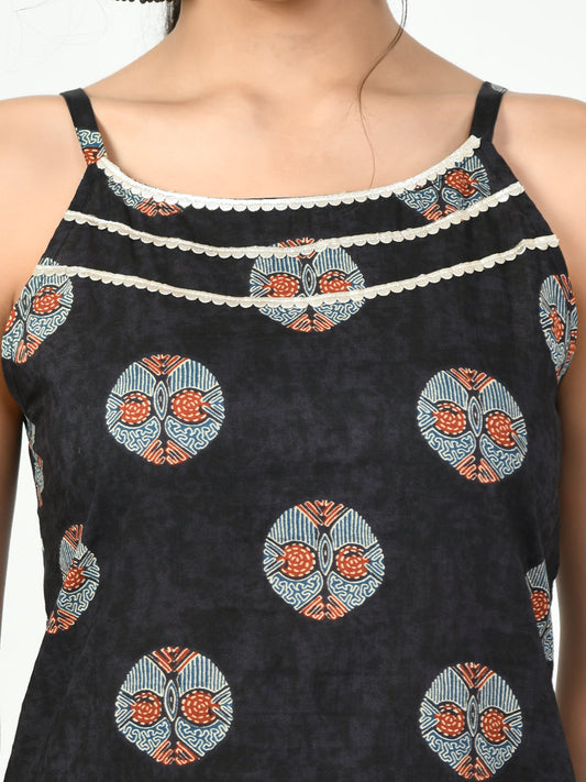 Myshka Women's Black Printed Kurta With Trouser Myshka