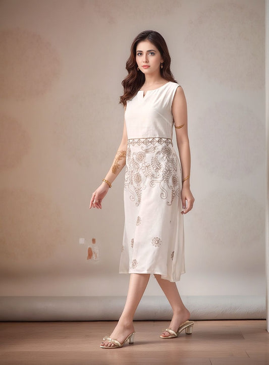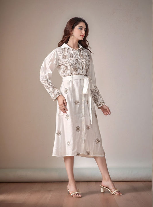 Myshka Women White Embroidered Shirt Dress Trendy Full Sleeves