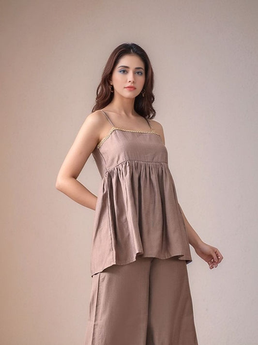 Myshka Women Grey Laced Peplum Longline Top Shoulder Strap