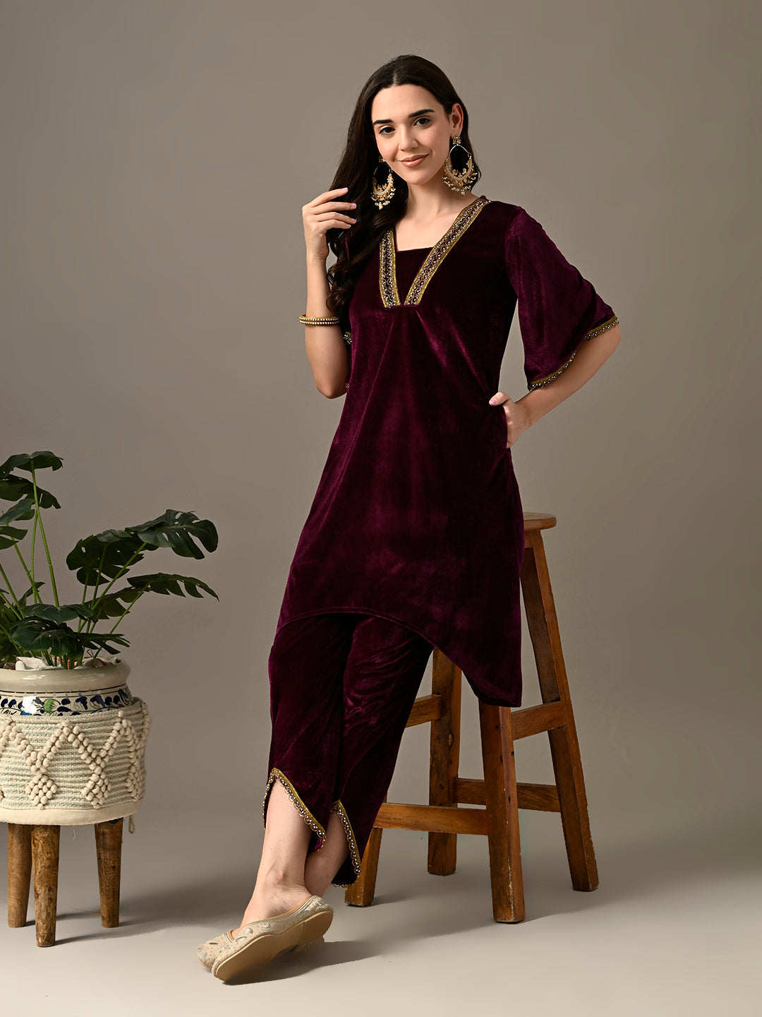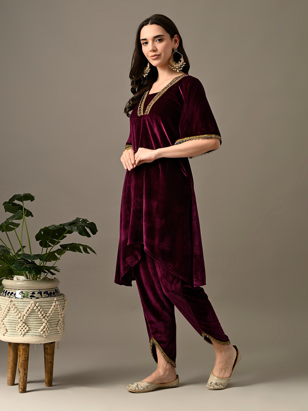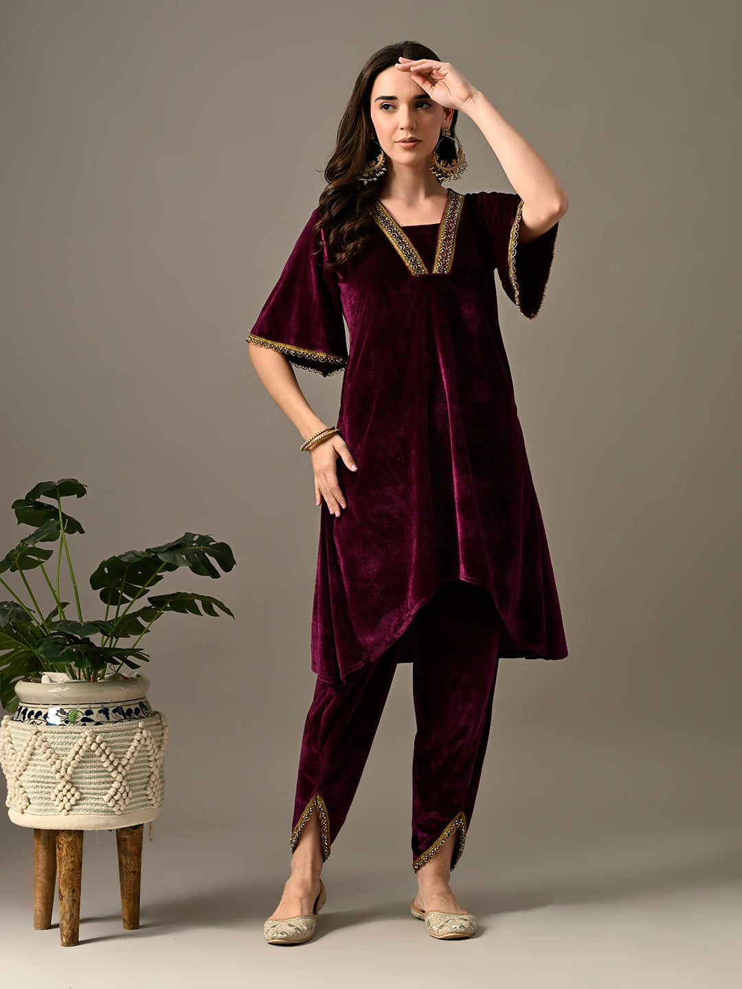 Myshka Women's Magenta Velvet Kurta Pant